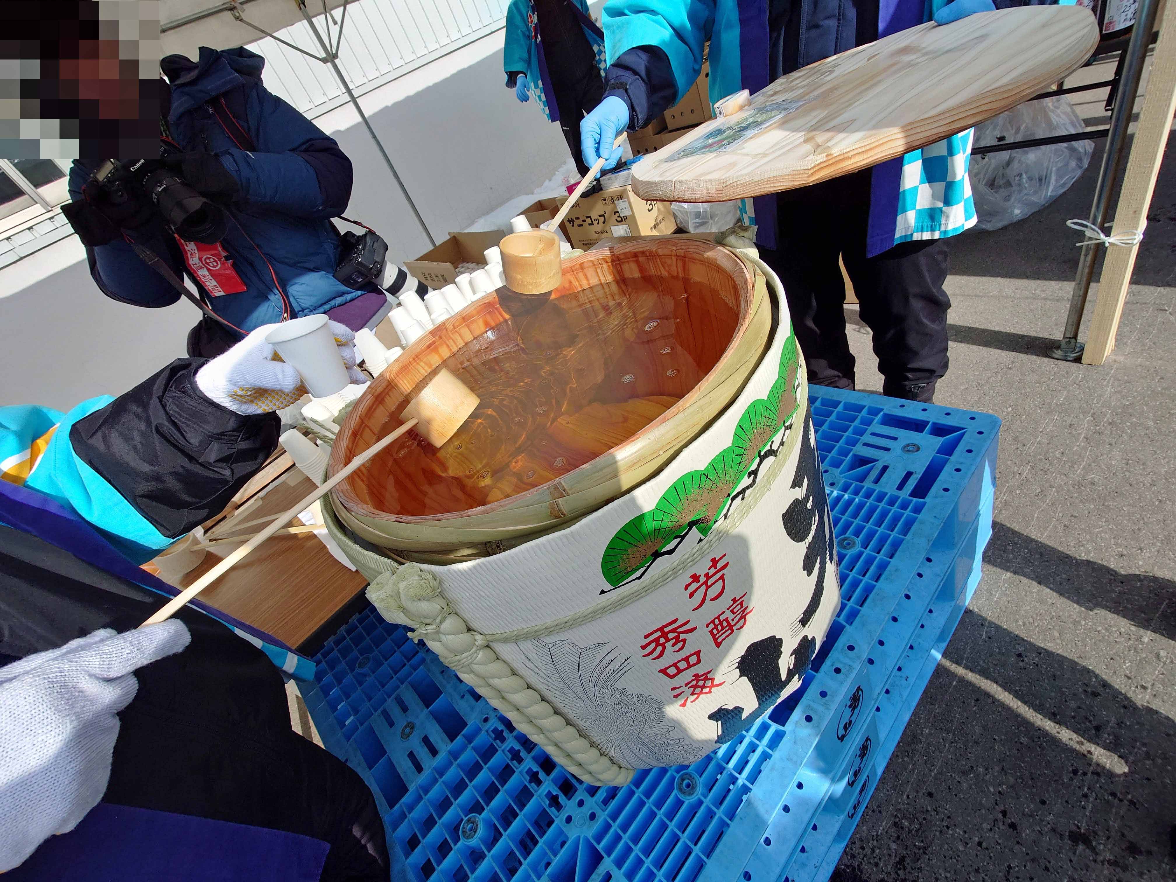 会場では樽酒の鏡開きを実施し振る舞い酒は無料で配布されます。(数量限定 / 1人1杯まで)実施時間は10時・12時の2回です。なお、鏡開きで実際に樽を開けるのは、会場にいる来場者の中から司会者が抽選で選ぶ形式とのこと。見て楽しむのはもちろん、運が良ければ参加できるかもしれません。木槌で樽を割る瞬間は、思わず見入ってしまう迫力!木の杓子で掬われた樽酒を飲めるのは、こういうイベントならではの特別感があります。