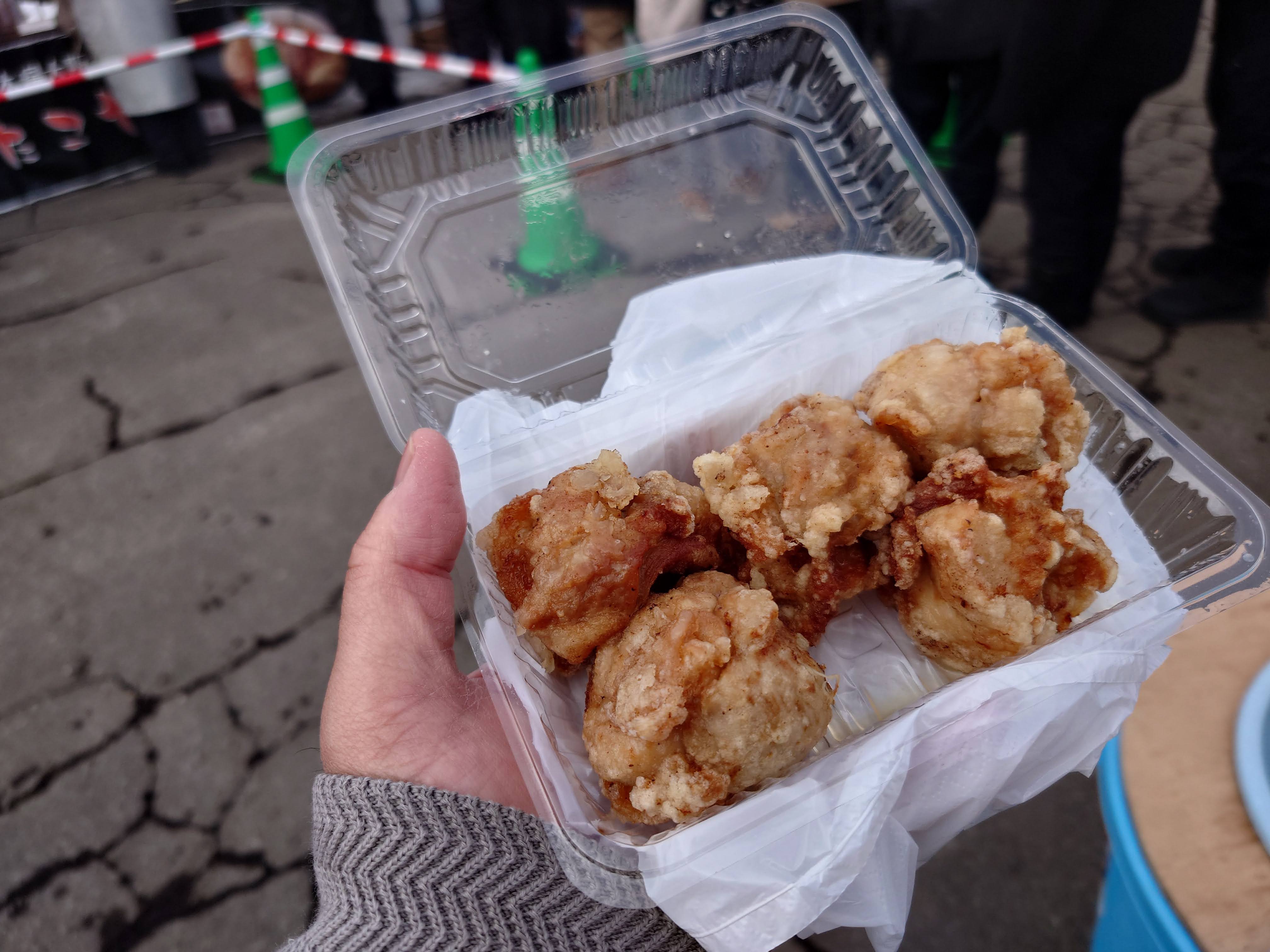ロバ菓子司・大雪地ビール・須藤製麺・ラーメン一心・かつたこ・金ちゃんのからあげ・ファームズ千代田・イモベーションなどが出店予定。画像は昨年いただいた「金ちゃんのからあげ」。ジューシーで美味しかった!