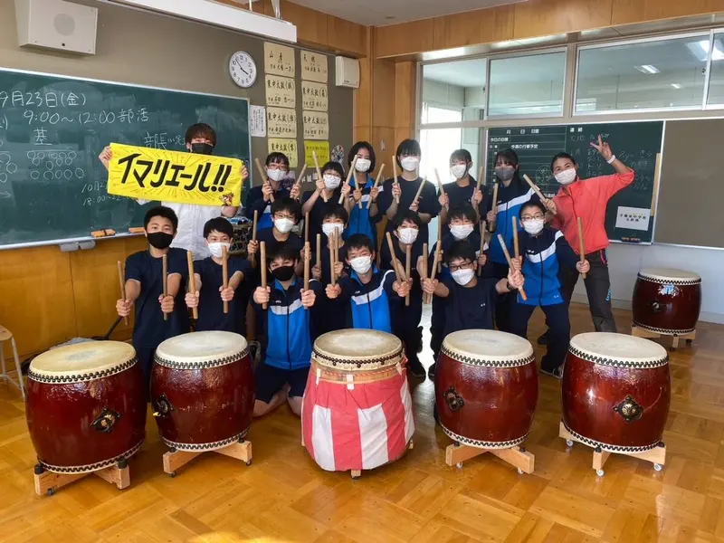 生徒のみんなに挨拶をし、朗らかな時間が過ぎていましたが、演奏収録になると空気は一変。真剣な表情で太鼓部伝統の「天地」を披露。代表生徒は「僕たちなんかでいいんだろうか」と不安げな表情をしていたのが嘘かのような凛とした表情で演奏してくれました。