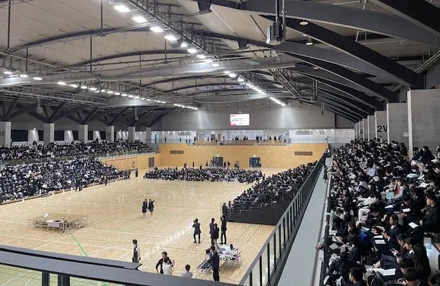 昨年、イベントが終わった後の反省会で生徒自身が「聞く」だけでなく、能動的に考えて動けるイベントに出来ないかと提案した。その結果、今年はスポーツの試合でもよく使われる北ガスアリーナに約2,000名の高校1年生が集まった。