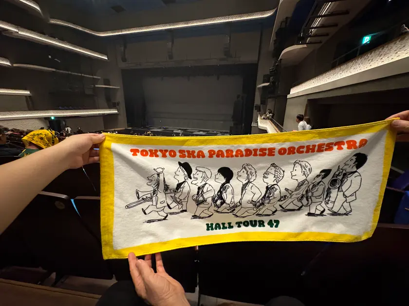 東京スカパラダイスオーケストラ47都道府県ツアーファイナルの会場「那覇文化芸術劇場なはーと」は、座り心地の良い座席が左右も囲むキャパ2000人の素敵なホールだった。1階後方だったけど、とても見やすい席でした!父にグッズを買ってあげたかった。思い出にお揃いのタオルを買って、ライブが終わったら会場の外で一緒に掲げた写真を撮って…などと想像しながら「グッズ買うから欲しいの言って!タオル買おうよ!」と言うと、「タオルはかまんき、パーカーが欲しい!」と返ってきた。(かまん=高知の方言で「⚪︎⚪︎じゃなくていい」という意味)父とタオルを掲げる夢は次回に持ち越すことになった。