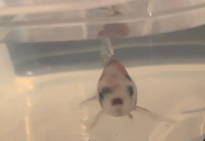 お家に来たばかりの頃は、人が近づくと驚いて泳ぎ周り、指を近づけると離れていました。