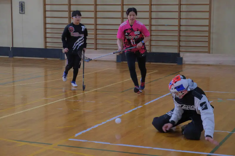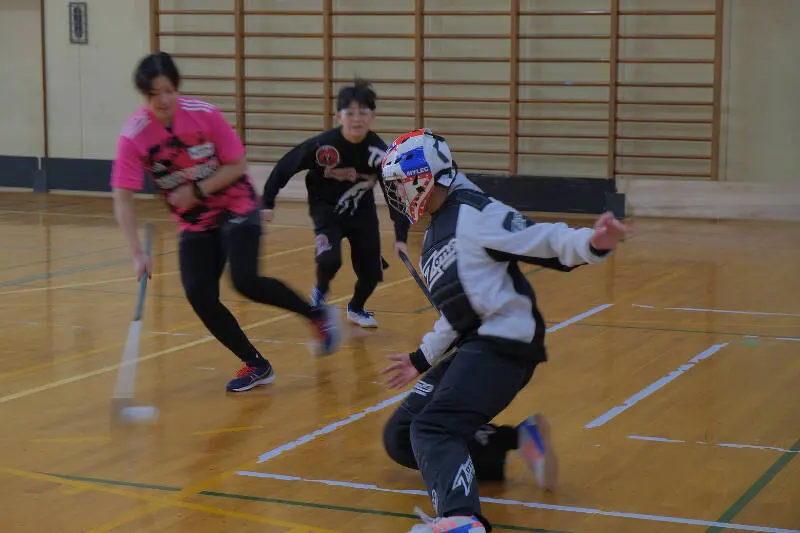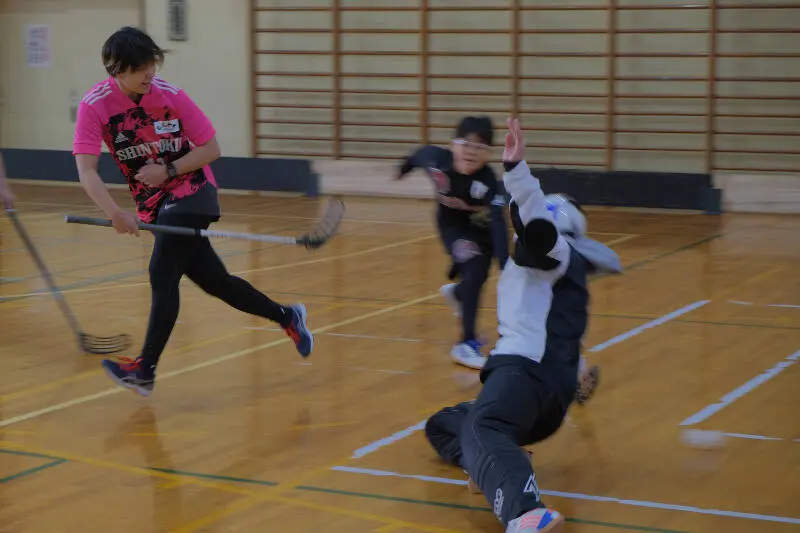 アイスホッケーと同じように、コート上では5人対5人(プラスGK1人ずつ)なことやスティックでボールを扱ってプレーするので、スケートを履いているか履いていないかの違いだけかと思いきや実際にやってみると微妙に違う点もあって、アイスホッケーとは違う戦い方を覚えるのも楽しいポイントでした!