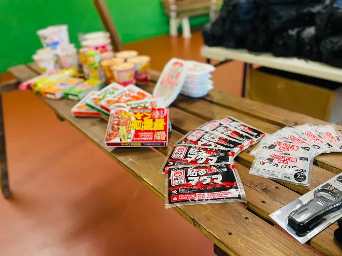 また、売店にはカップ麺やビールなどの飲食料品、使い捨てカイロや薪なども販売しています。手ぶらバーベキュープラン(1人前5500円)も用意しています。