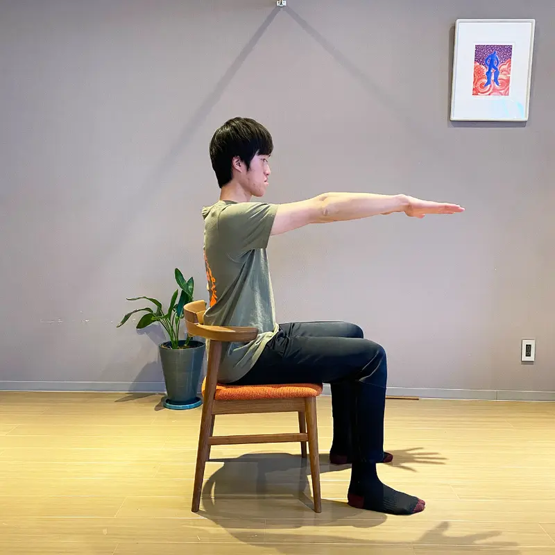 椅子を持ちながら片足のスクワットを行ってみましょう!