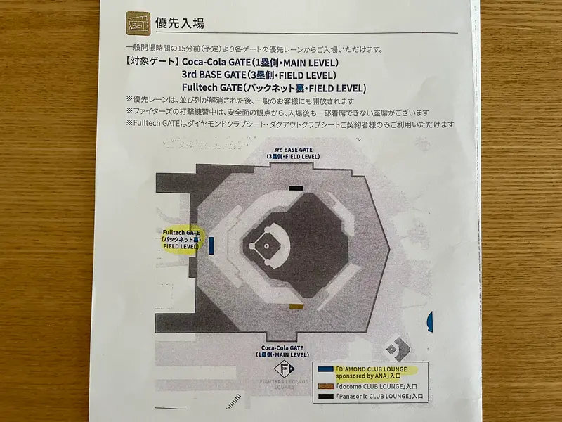 対象の「Fulltech GATE」は、ダイヤモンドクラブシート・ダグアウトクラブシートの人のみが入場できるゲート。