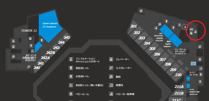 場所は、1F FIELD LEVELのレフト側に3か所(TOWER11 GATE手前、tower eleven foodhall内、F NEO BANK GATE入って左手)です。