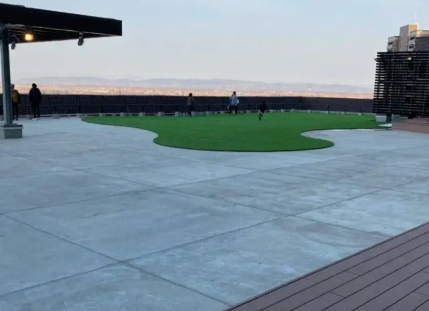 一部が人工芝になっていて、思いっきり走ることもできますし、テラスからの眺望を楽しむこともできます。