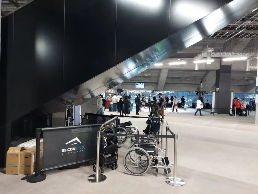 1~3階まであるエスコンフィールド北海道は、エレベーターもありますが各箇所1機で動きもゆっくりなので少し時間がかかることもあります。エスカレーターもうまく使いながら移動すると効率的に動けます。