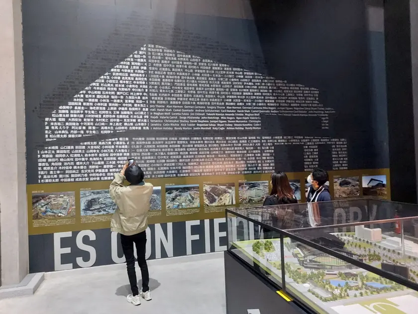 日本ハムファイターズの歴史から、歴代選手の名前、北海道ボールパークFビレッジのミニチュアがあります。ミニチュアは、子どもたちと指差しながら今どこにいるか確かめながらボールパーク全体の広さを知ることができます。