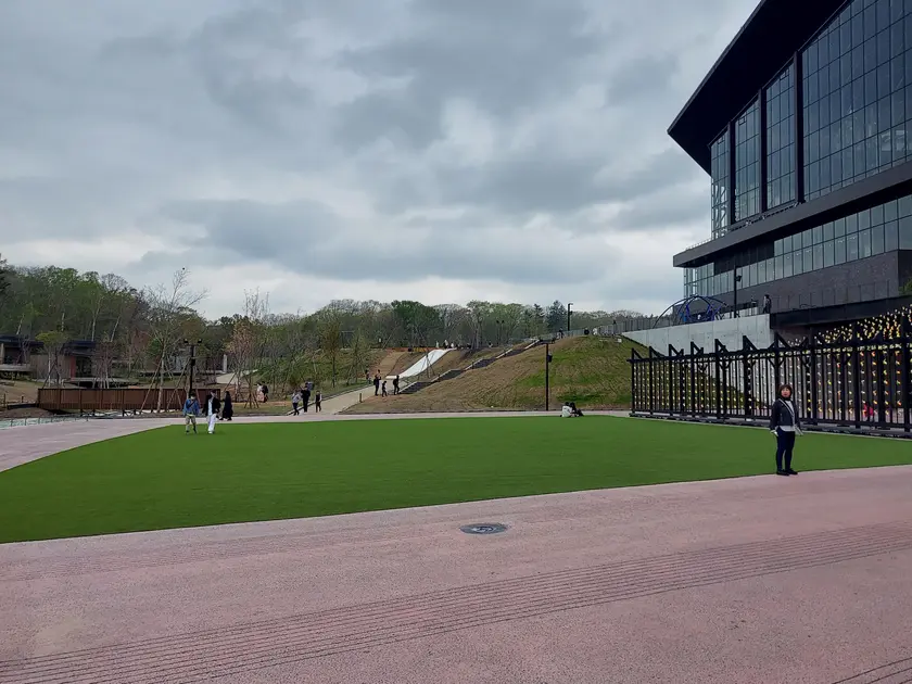 エスコンフィールドのガラスウォール前に広がるエリアです。