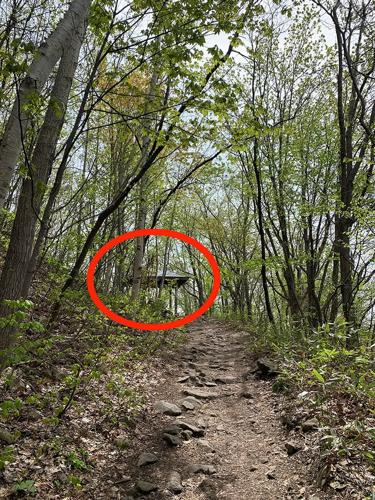 「九の坂」から再び緩やかな散策路が続きます。ここは「哲学の道」からのルートとの合流点。5分ほどで「四阿(あずまや)」が見えてきますので、もしも疲れたら無理せずベンチで少しゆっくり休憩しましょう。森の香りや木漏れ日が最高に気持ち良いです!