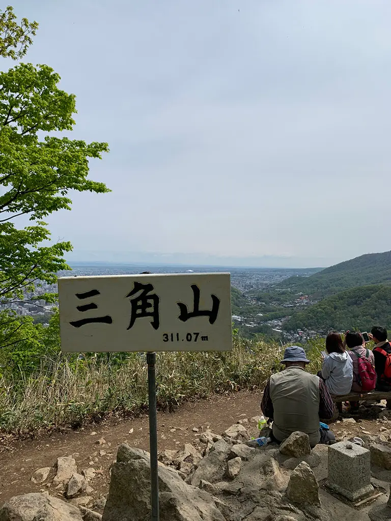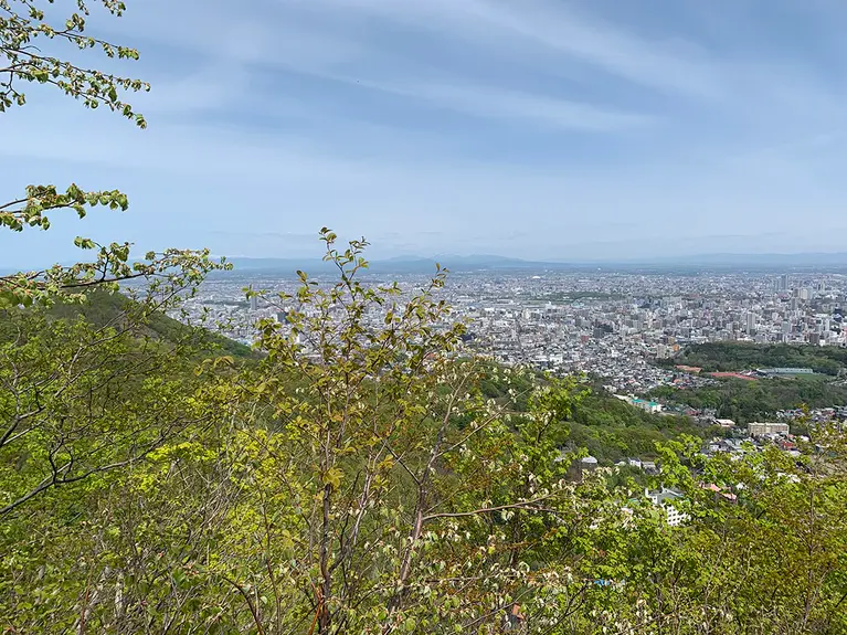 ここは札幌市街を一望できる絶景ポイント。碁盤の目をした街並みがよくわかります。開拓使判官の島義勇が三角山で札幌の市街計画の構想を考えた、というのも、なるほど納得できますね。山頂はそれほど広くありませんが景色をゆっくり楽しむことができます。