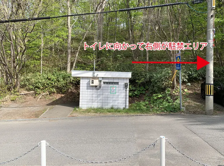 トイレに向かって右側が駐禁エリアです。駐車場の並びなのでうっかり停めちゃいそう。間違いやすいので要注意です。