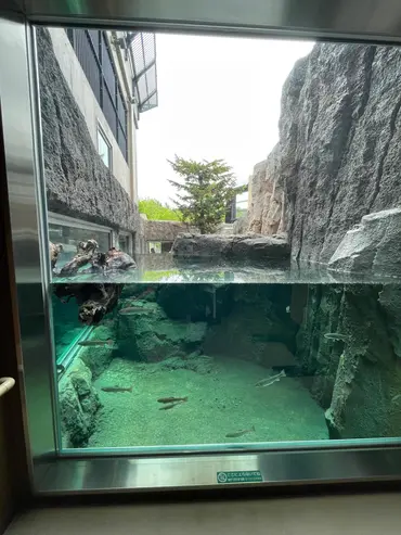 ということは、この川に、クマがダイブして、お魚ちゃんゲットだぜ!!って感じになるってこと!?と思って、結構粘ってみたのですが、この日は下に降りて来ず。残念。でも隣で同じようにクマを待っていた隣の男性が、魚にめっちゃ詳しい方で、どうやら、マスが泳いでるぞ!みたいな話だったと思います(あくまでも個人の見解なので本当かどうかは動物園の方に聞いてね!)