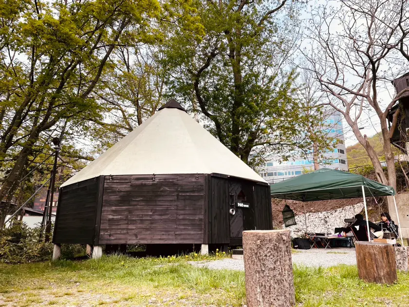 札幌市中心部から車で30分ほどという立地ですが、車を乗り入れられるオートサイトや自由にテントを張れるフリーサイト、さらにグランピングまであり多彩です。