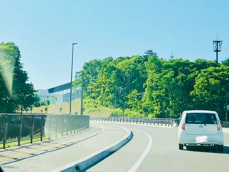 ナビをセットして札幌から北広島へ向かう道中、少しずつ大きな建物が見えてくるワクワク感!!
