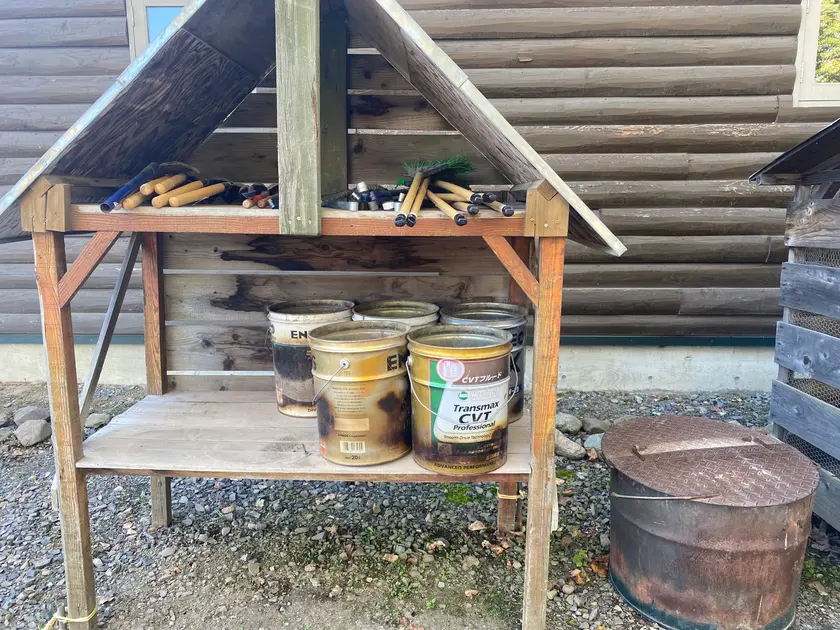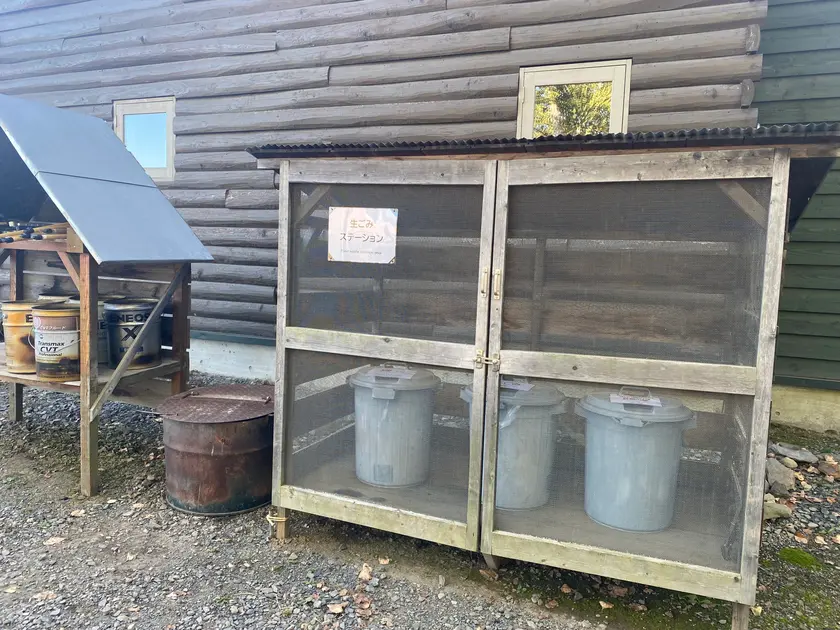 管理棟の並びに炭捨て場と生ごみ捨て場があります。それ以外のごみは持って帰ります。