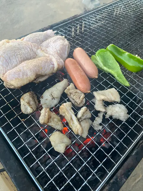 真暗になる前にまずは焼肉。あまり暗くなると焼き加減がわからなくなるので(笑)