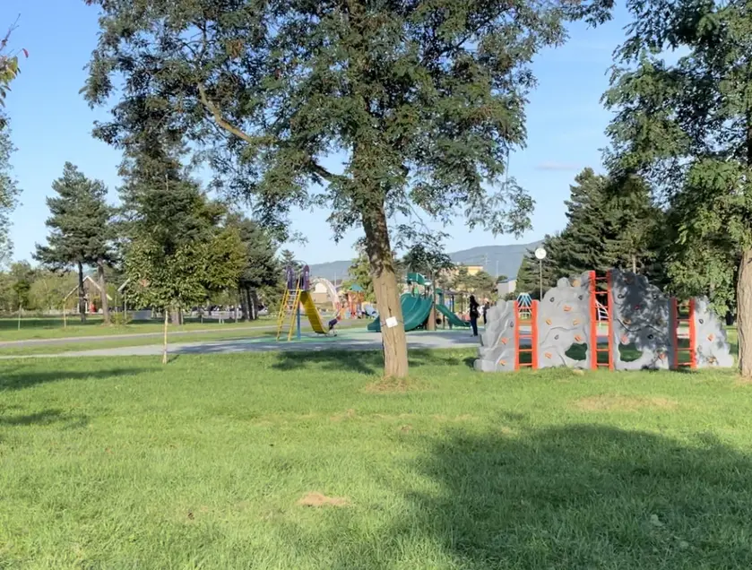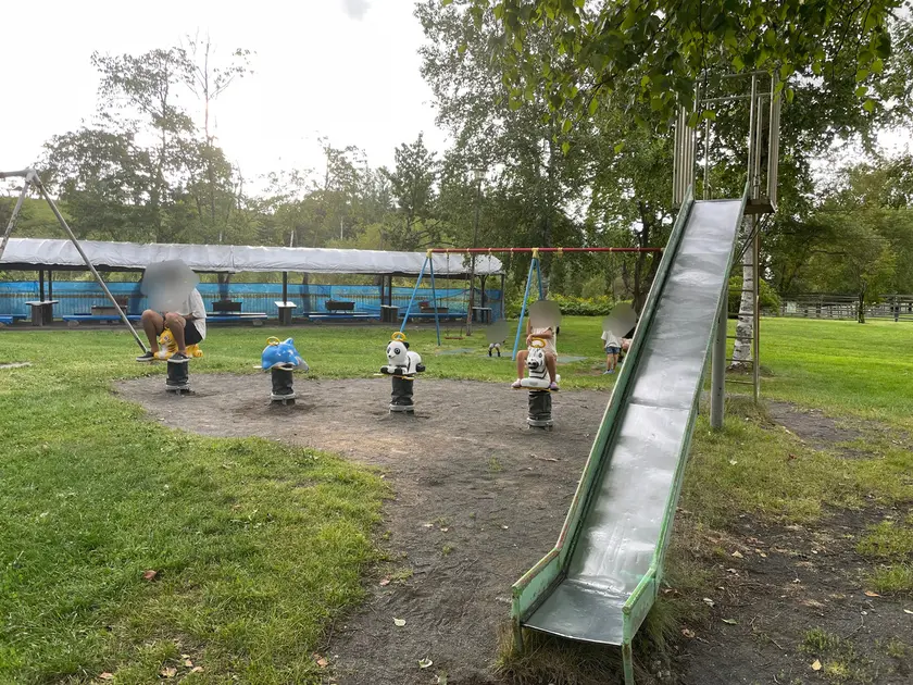 とっても広々としていて、3〜6歳、6~12歳用の遊具があったり、夏場は水遊びもできます。