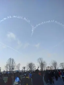 この日は開場前の時間帯にブルーインパルスの飛行がありました。ハートマーク!
