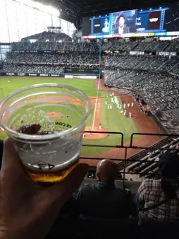 いつものようにまずはビールを飲んでみました。新球場にカンパーイ!