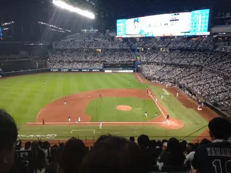 新球場開幕戦の対楽天戦に応募してみたら、幸運にも第三希望の内野3階席に当選したので行ってみました。