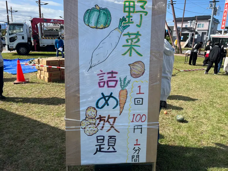 会場に入ってまず目に入ったのは野菜詰め放題。