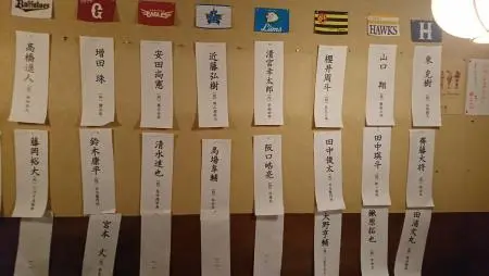 ルールは本物と全く同じ。1位指名はまず全球団が発表し、重複したら抽選します。2位以下は本物と同じく今季の成績下位から順に指名するウェーバー制です。指名選手は居酒屋の壁に貼り出されます。時間があれば3位まで指名します。