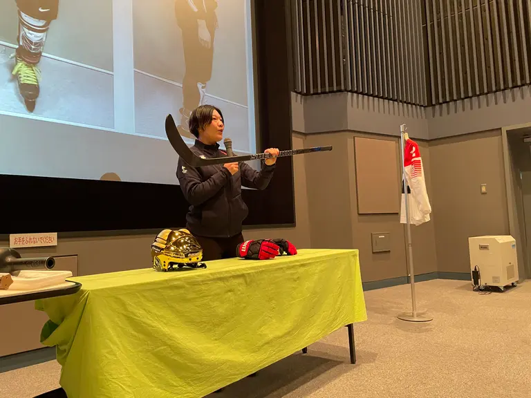 アイスホッケーという競技自体を知ってもらったり、実際のチームづくりや、日本の女子アイスホッケーの歴史についてもお話しました。