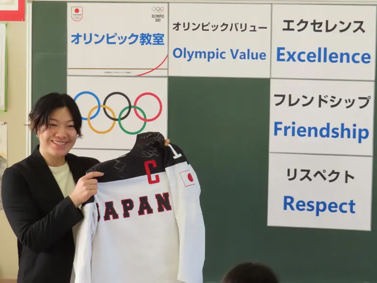 オリンピック教室では、オリンピアンが先生となり、運動の時間と、座学の時間の2コマで、オリンピックバリューについてを一緒に学ぶ時間です。