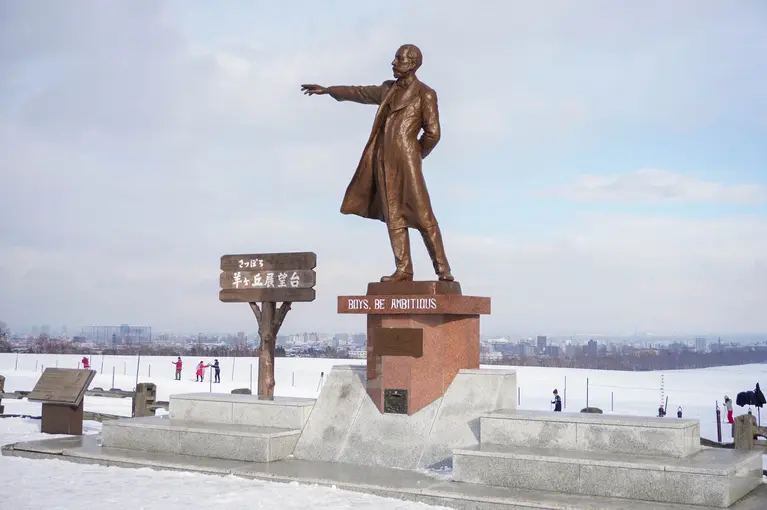 博士の像が空に腕を差し、威風堂々とした姿を見せるさっぽろ羊ヶ丘展望台は、市内中心部のそばにありながら北海道らしい景色が広がるスポット。