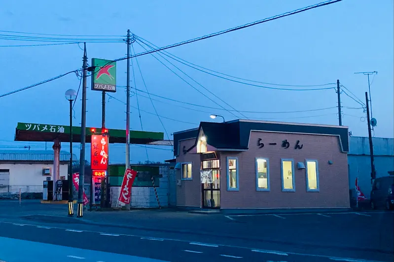 続いてまた道の向こう側から手招きするラーメン店主を発見!専務と係長は 辛味噌らーめんを食べてます。
