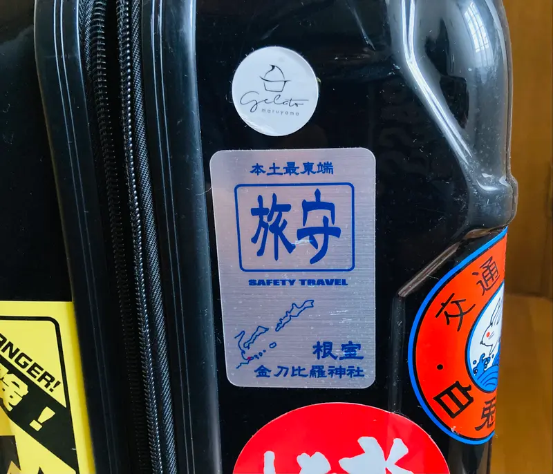 根室・金刀比羅神社の禰宜 前田さんから手紙と「旅守ステッカー」が届き、ここ厚賀駅前で長柄杓の内側に貼り、改めて旅の安全と無事にゴールまで辿り着けますようにと祈願する。(私は たまにチラっと「旅守ステッカー」が映る度に厚賀駅を思い出してました)