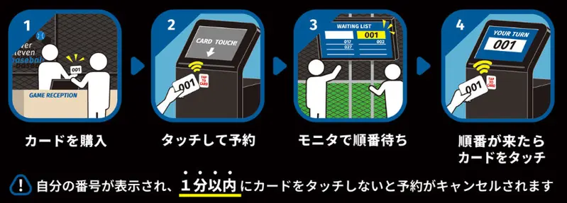バッティングの入り口にある操作パネルにカードをタッチして予約。