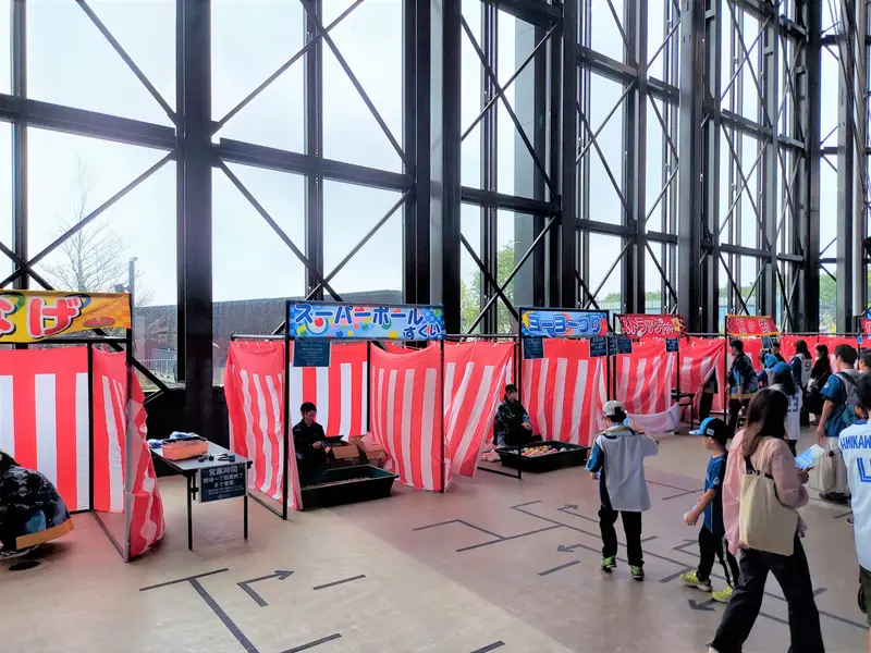 そらとしば by よなよなエール前の広いスペースにお祭りの雰囲気を出した縁日が登場しています。
