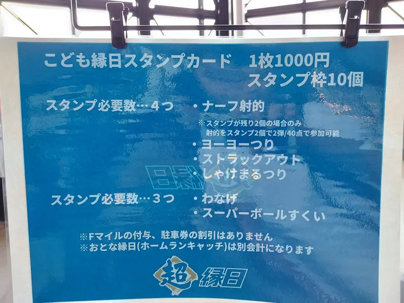 こども縁日は1枚1,000円のこども縁日スタンプカードを購入して、スタンプを使ってそれぞれのゲームに挑戦します。
