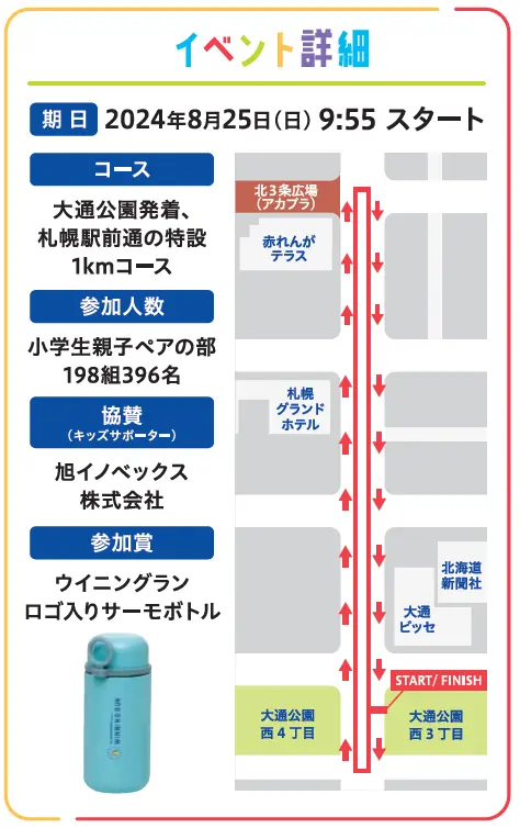 【開催レポート】北海道マラソン2024「ウイニングラン」の舞台で、今年も小学生親子ペアがラン!