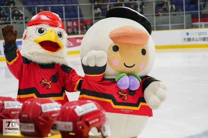 ※レッドイーグルス北海道は王子製紙アイスホッケー部時代からマスコットキャラクターが鷲です。その鷲にちなんで、鷲掴みが合言葉になっています。