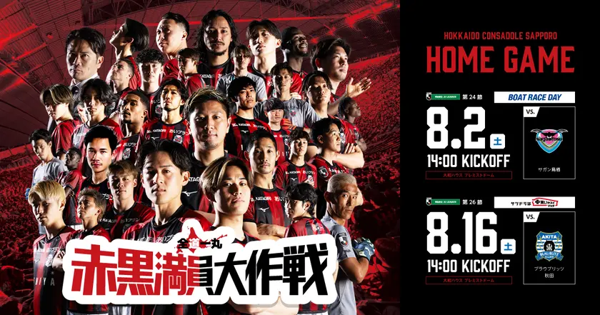 試合とエンターテインメントが楽しめる次のチャンスは、8月2日(土)のサガン鳥栖戦と、8月16日(土)のブラウブリッツ秋田戦の「全道一丸!赤黒満員大作戦」です。家族で楽しむもよし、これを機にサッカー観戦デビューするもよし。みんなで北海道コンサドーレ札幌を盛り上げましょう!!!チケットの購入はこちらから。
