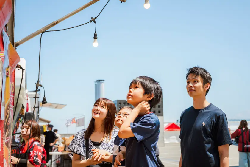 屋外のスペースでは、サッカーボールやバドミントン、なわとびなどの用具を無料で貸し出しており、元気いっぱい、体を動かす親子連れの姿もありました。シャボン玉エリアも人気で、子どもたちは大きなシャボン玉ができるリングや、細かいバブルがたくさん出るシャボン玉鉄砲などを使って、青空にシャボン玉を噴射。周囲にはキラキラ光るシャボン玉が舞い、子どもたちの歓声が響いていました。