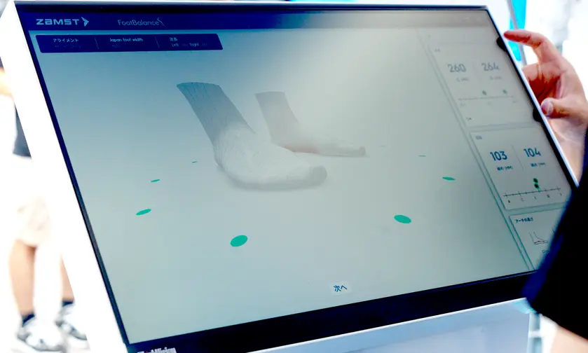 今回はレディインソール(既製品)のさらに上をいく「オーダーメイドインソール」が登場。その名もFootcraft CUSTOM(フットクラフト カスタム)!ZAMSTのブースでは、わずか10分で完成するんです!