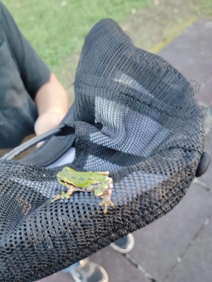 腹ごしらえを終え、買い出しも済ませたら夕食までは自由時間。鶴沼公園には広い遊具広場があり、子どもたちはすぐに駆け出していきました。ターザンロープやブランコ、複合遊具が並び、子ども連れのファミリーでにぎわっています。娘は遊具に夢中、息子はカエル捕りに没頭。自然の中で思い切り遊ぶ姿を見ていると、やっぱり来てよかったと実感します。