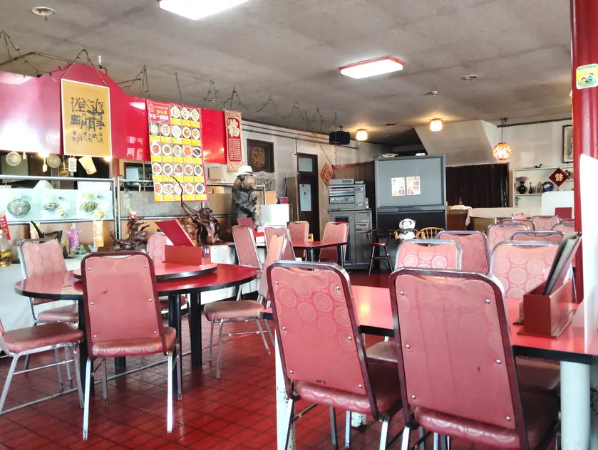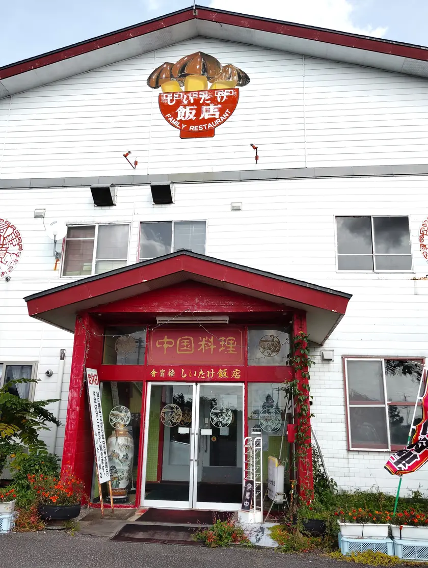 テントで一夜を過ごした翌朝もお天気は快晴。チェックアウトを済ませ、次に向かったのは浦臼町の名店「しいたけ飯店本店」。外観は年季が入っていて少し入りづらい雰囲気ですが、地元民に愛される本格中華が味わえる隠れた名店です。店内は広く、常連さんが次々と来店していました。