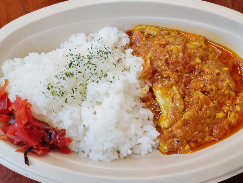 ランチは「ヘルシー食品物産館」のスパイシーチキンカレー