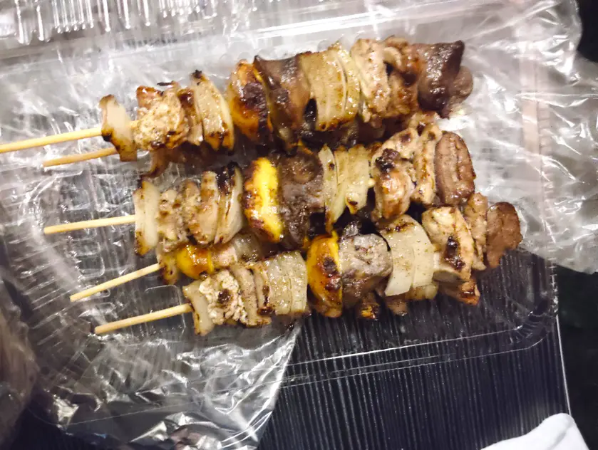 キャンプといえばBBQですが、我が家は「鶴沼公園での夕食は焼鳥」が恒例です。キャンプ場の向かい、国道275号線沿いにある「やきとり康」は、地元で愛される焼鳥小屋。豚串、とり串、もつ、タン、砂肝がすべて1本140円均一。炭火でじっくり焼かれた香ばしい香りが辺りに漂い、次々と地元客が訪れて注文していきます。