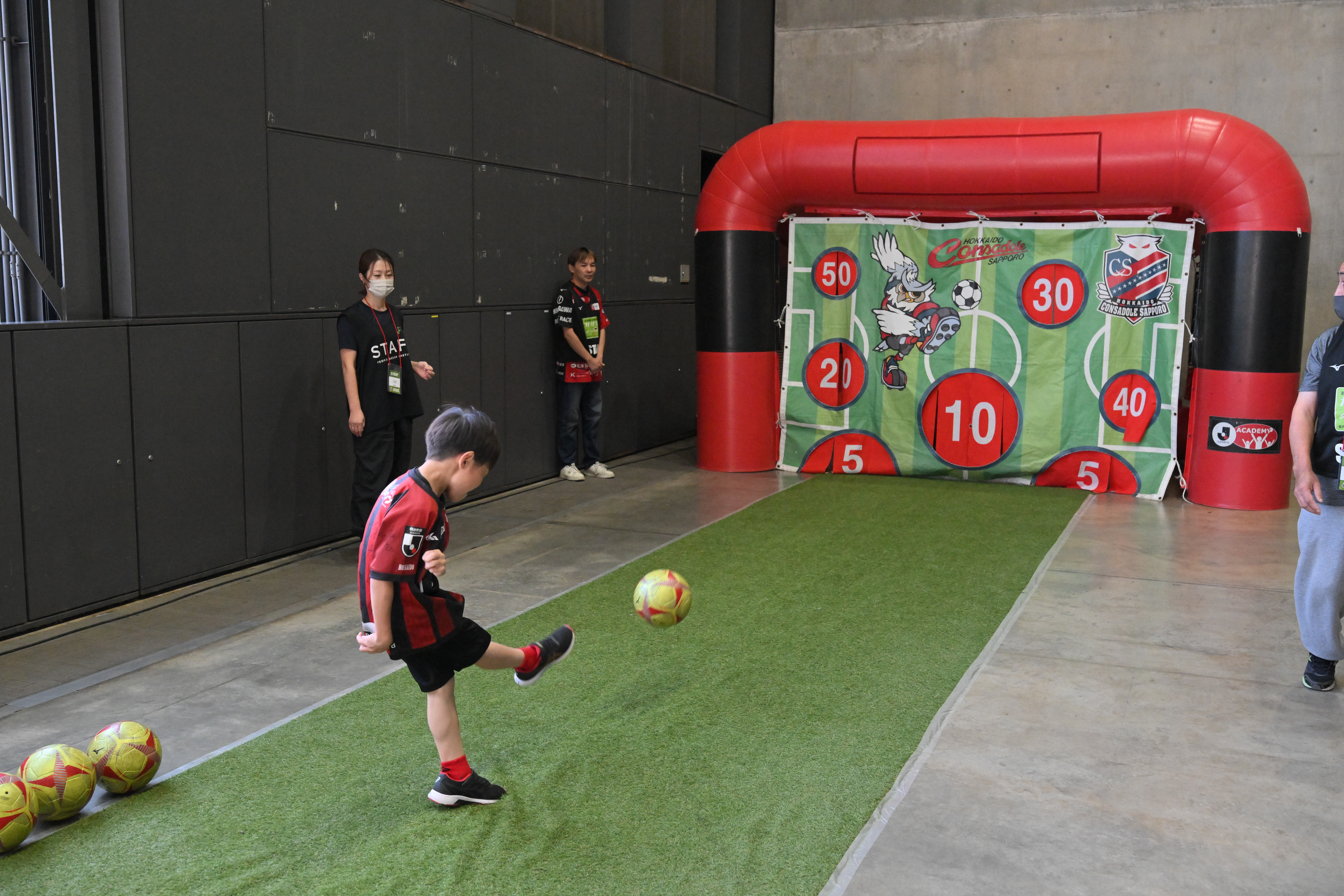 ドーム内には大人気のキックターゲットやフットダーツ、ぬりえコーナーなど家族みんなで楽しめる「ドーレくんひろば」が用意されます。