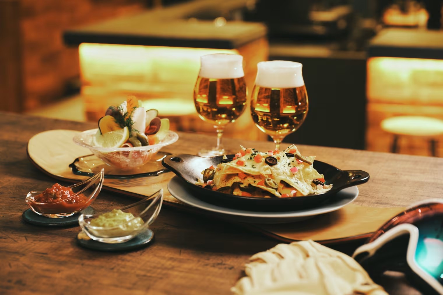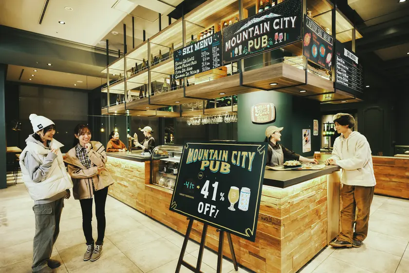 同じくホテル1FにあるOMOカフェ&バルでは、アフタースキーに嬉しい気軽に立ち寄れる「マウンテンシティパブ」を期間限定で開催。OMO7旭川近隣のクラフトビール屋さんと一緒に作ったオリジナルクラフトビールを販売します!