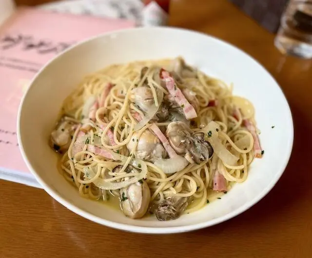 こちらは「カキとベーコンのペペロンチーヌ」(大盛)1,500円税込。