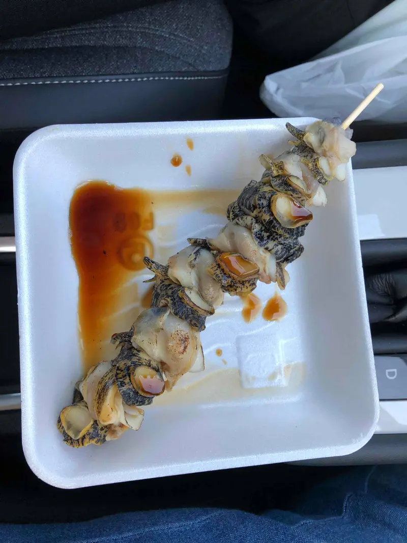 先程の遊釣倶楽部の方からいただいた差し入れのおいなりさんを、トンネル内で食べる